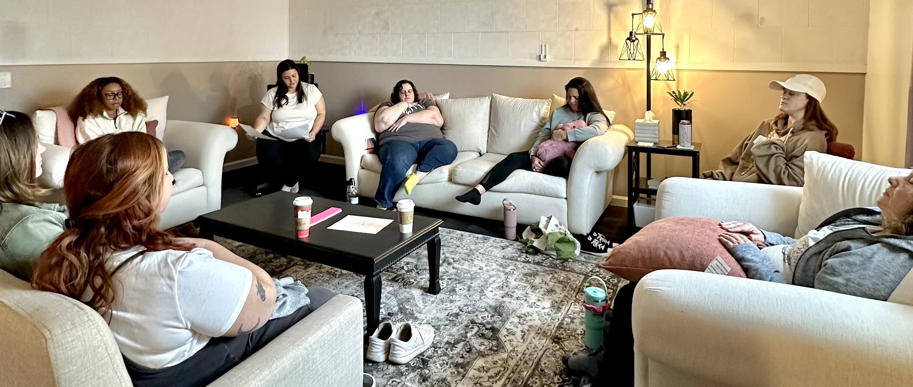 We encourage you to dress comfortably. Think cozy, soft, and true to you. This is a relaxed, nurturing environment. You may be sitting on cushions, chairs, or moving between stations, so comfort is key.